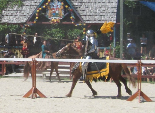 Notice that we were sitting in the Black Knight's rooting section for the joust. He won, well actually he was found to have cheated, so the later show (which we skipped) had a challenge fight to the death! We can only hope Divine Providence had him correcting (not just contemplating) the error of his ways and that he finally triumphed honestly!! Deo Gratias!! : )